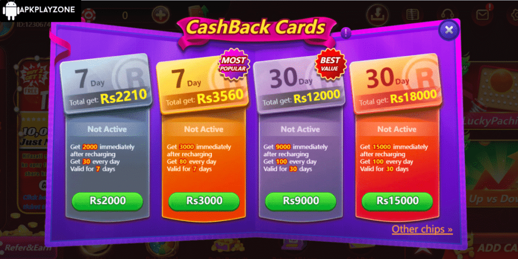 - Real Money Earnings: Players can earn real money by playing games, participating in lucky draws, or becoming agents, with options to withdraw via Jazz Cash and Easy paisa.